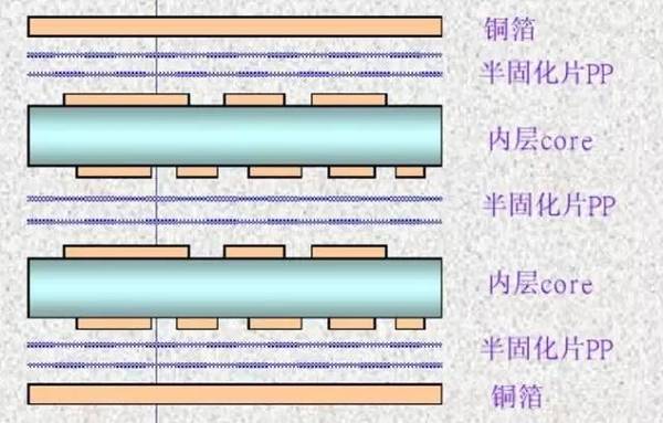 这里需要一个新的原料叫做半固化片,是芯板与芯板(PCB层数>4),以及芯板与外层铜箔之间的粘合剂,同时也起到绝缘的作用。