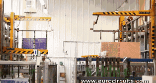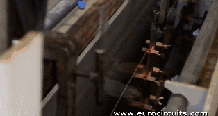 将PCB用夹子夹住,将铜电镀上去。之前提到,为了保证孔位有足够好的导电性,孔壁上电镀的铜膜必须要有25微米的厚度,所以整套系统将会由电脑自动控制,保证其精确性。