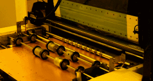 在之前的层压工序中,融化的环氧树脂被挤压到了PCB外面,所以需要进行切除。靠模铣床根据PCB正确的XY坐标对其外围进行切割。