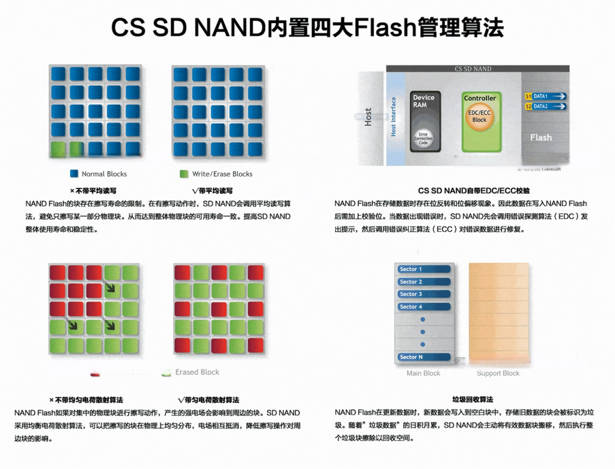 CS创世 SD NAND把这些算法都集成到内部了。示意图如下: