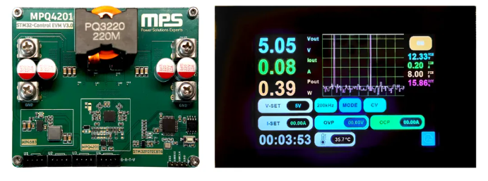 系统基于 MP4201 构建 Buck-Boost 拓扑,并配合 STM32 及外设实现参数配置、状态监测及智能交互。