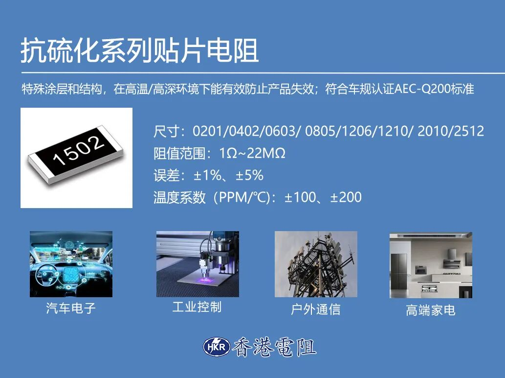 3、结构保护型抗硫化电阻,通过结构保护及材料匹配来达到抗硫化性能。主要应用在通讯基站,空调,医疗器械,化工厂等。