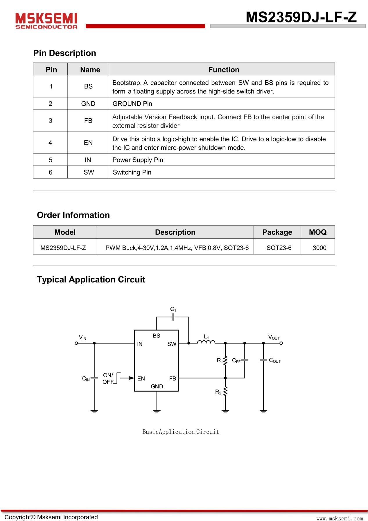 | C49375222 | MS2359DJ-LF-Z | MSKSEMI(美森科) | SOT-23-6 | DC-DC电源芯片 |