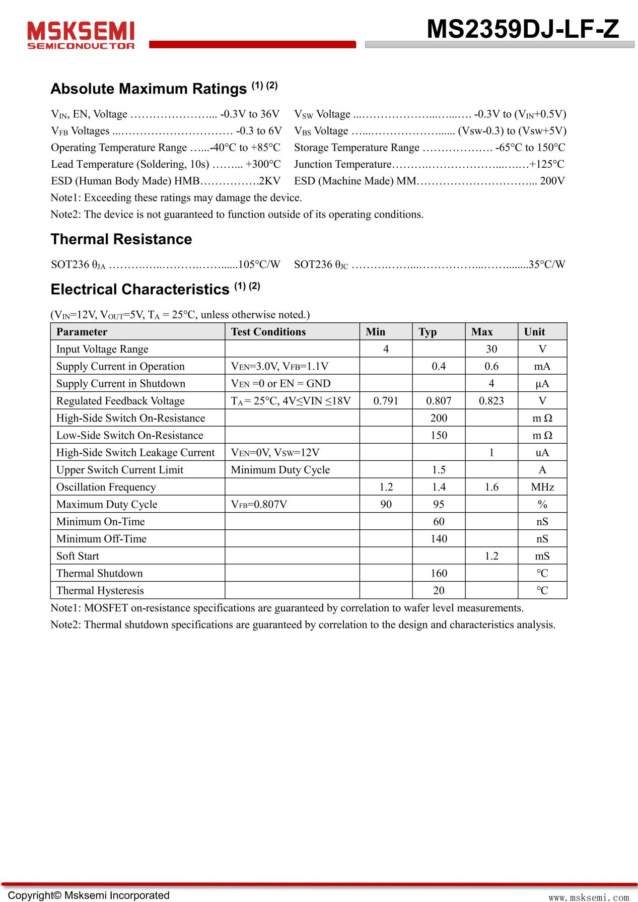 一、MSKSEMI美森科 MS2359DJ-LF-Z 的亮点与优势