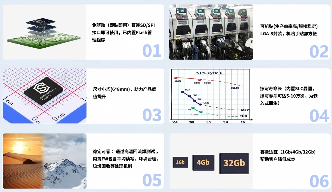 研发部门所在项目需要再NAND FLASH中存储图片 语音数据,经常因为坏块问题需要去工厂解决问题,编写坏块管理,甚至手动编写平均读写算法……非常的麻烦。之前没有了解到国产有非常优秀的贴片式SD卡产品——CS创世。