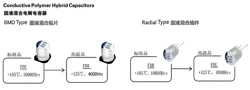 SMD贴片式类型的FBV长寿命系列、FBW高温品系列;