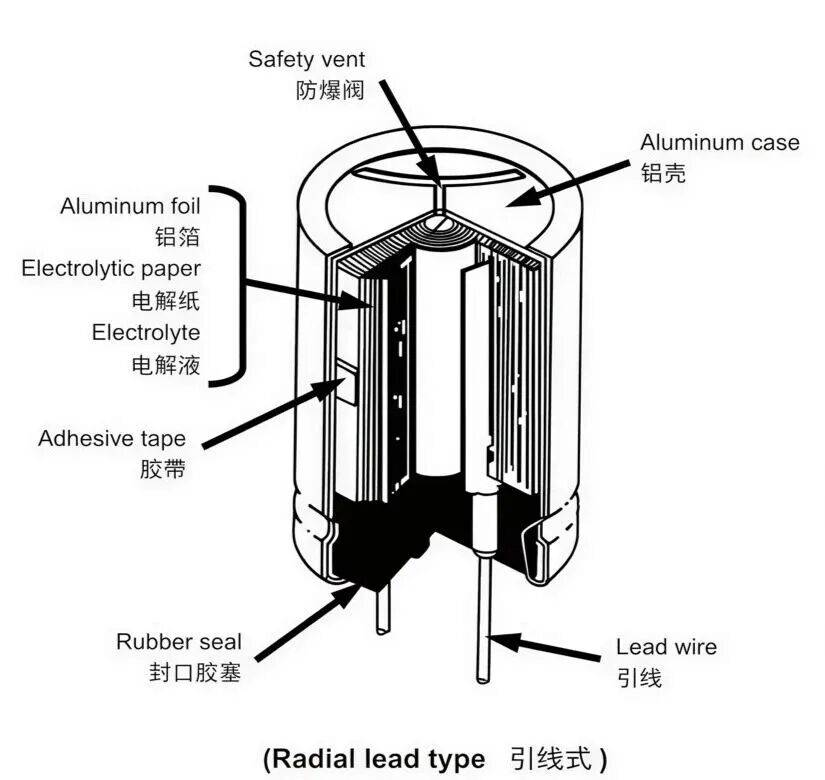 铝电解电容器的构造始于阳极与阴极铝箔分别同相应端子的连接。随后,它们与电解纸一起被卷制成一个核心卷。该卷芯经过电解液的充分浸渍后,被密封在金属铝壳之中。各组件通过这种精密的组合与相互作用,共同完成了电容器储存电能并在需要时释放电能的基本使命。