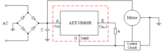 对于感性负载的应用,AKP10M60R能有效的抑制感性负载产生的瞬态脉冲,同时也能有效地简化电路,提高应用的性价比。