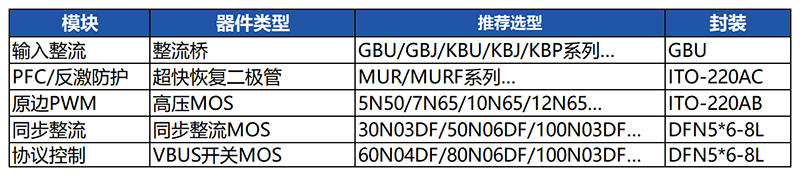 固得沃克PD快充器件选型表