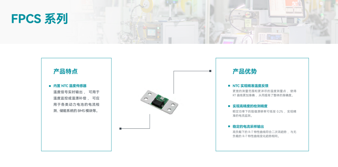 突破内置 NTC 温度传感器的 FPCS 系列,实现了温度信号与电流信号的同步监测,在动力电池 BMS 中可实时补偿温漂,将额定功率下的阻值漂移率控制在 0.2% 以内,这一技术突破使富捷科技在储能系统、新能源汽车热管理领域占据先机。