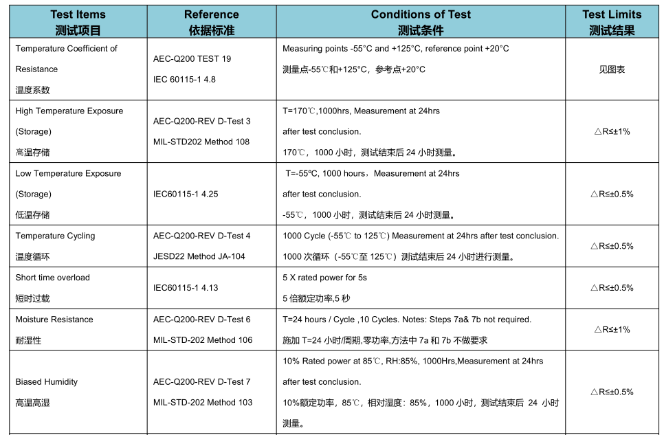 FRM 系列低阻值合金电阻在 - 55℃~+125℃环境下进行1000小时的测试冲击;1000 次循环(-55℃至 125℃)测试结束后 24 小时进行测量,阻值变化率达△R≤±0.5%。