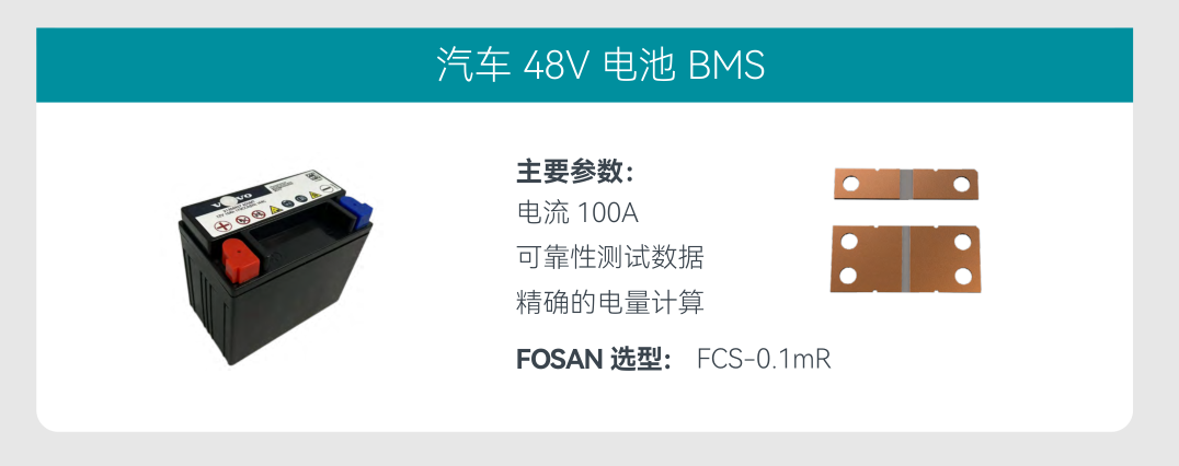 在新能源汽车领域,富捷科技的 FUS 系列分流器电阻已成功应用于知名头部车企的 48V 电池 BMS,以 0.1mΩ 阻值、100A 电流承载能力替代进口品牌,成本降低同时,也缩短了交付周期。