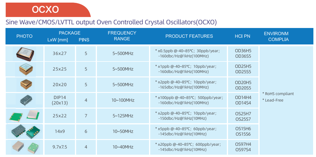 四、杭晶电子OCXO系列选型展示