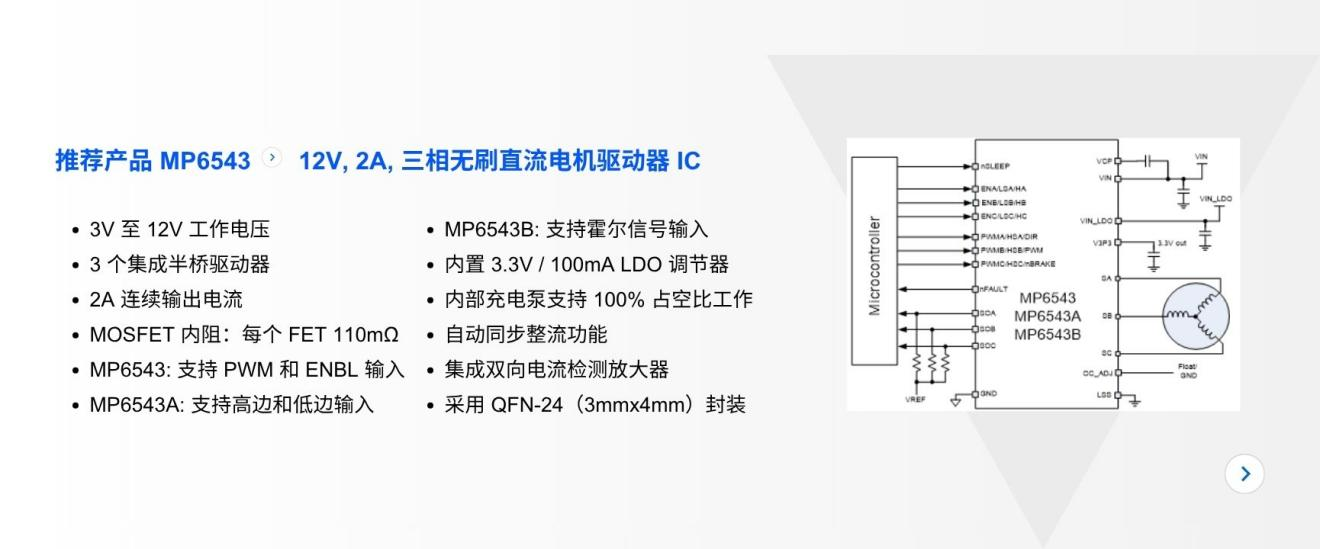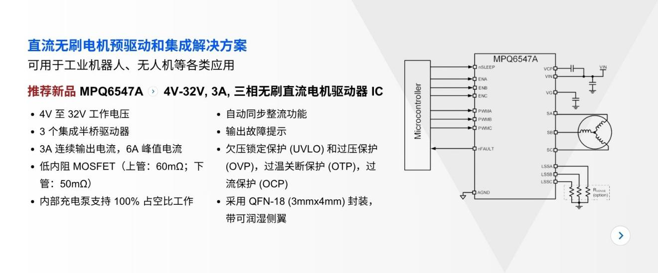 近年来人形机器人随着技术不断迭代,正加速迈向规模化应用与量产落地。AI大模型与机器人深度融合,在大幅提升自主学习、决策能力与智能交互的同时,也对整机功耗、动态响应与供电效率提出了更高要求,这背后离不开高效稳定的动力核“芯”。MPS可提供高性能电机驱动、传感器、电源管理、BMS及模块化产品,以更小巧高效的系统级方案助力机器人项目加速落地。