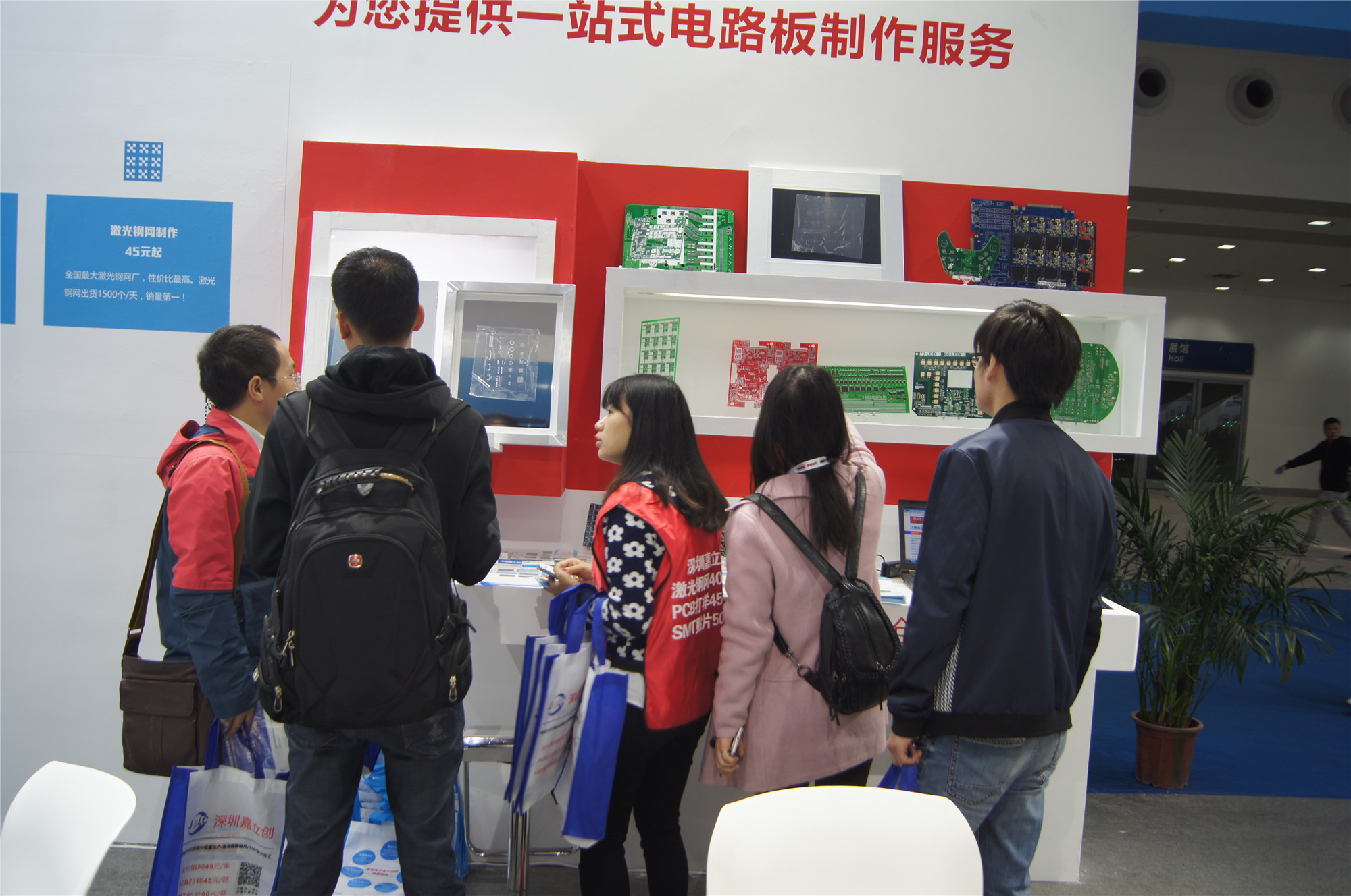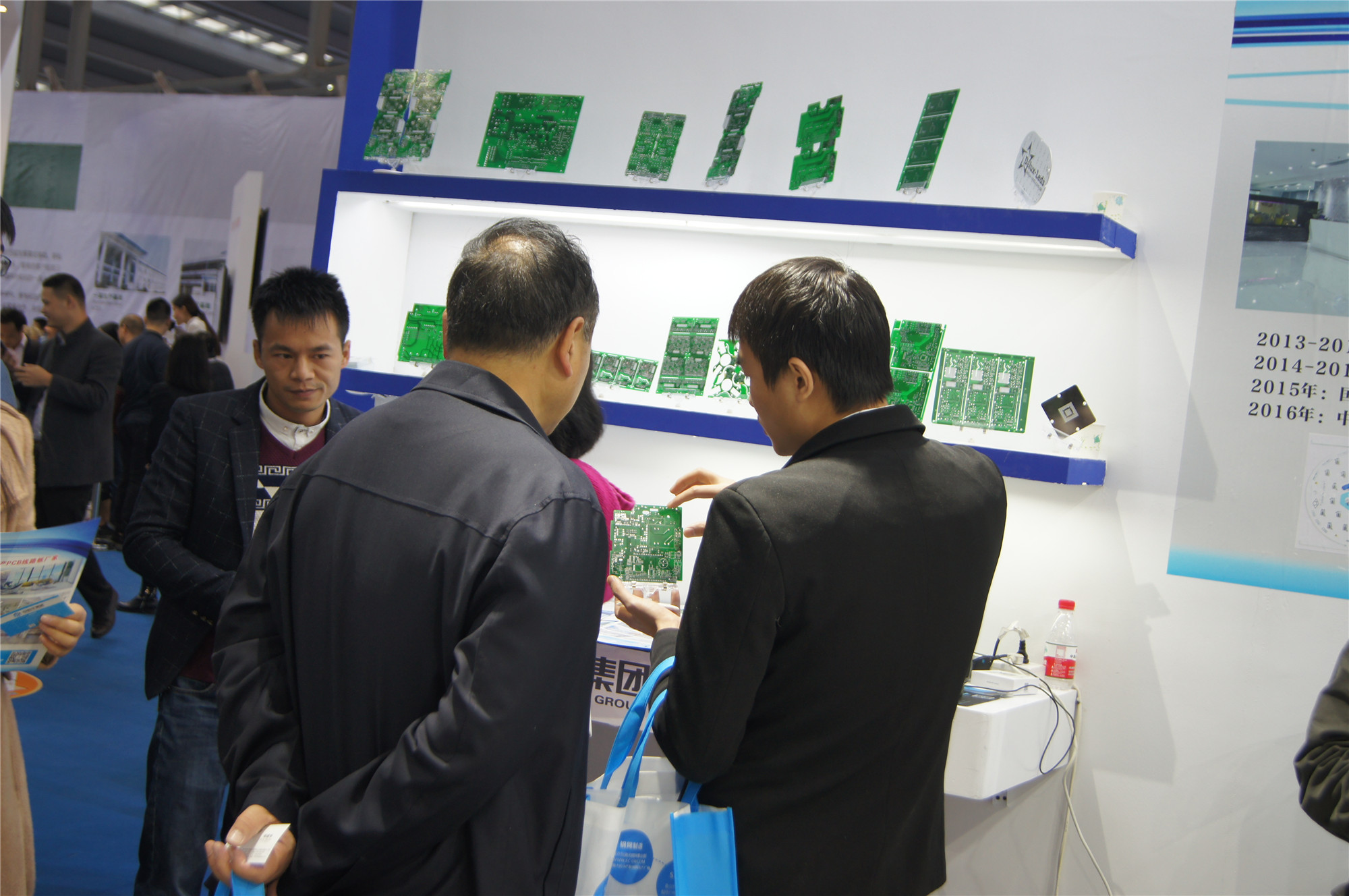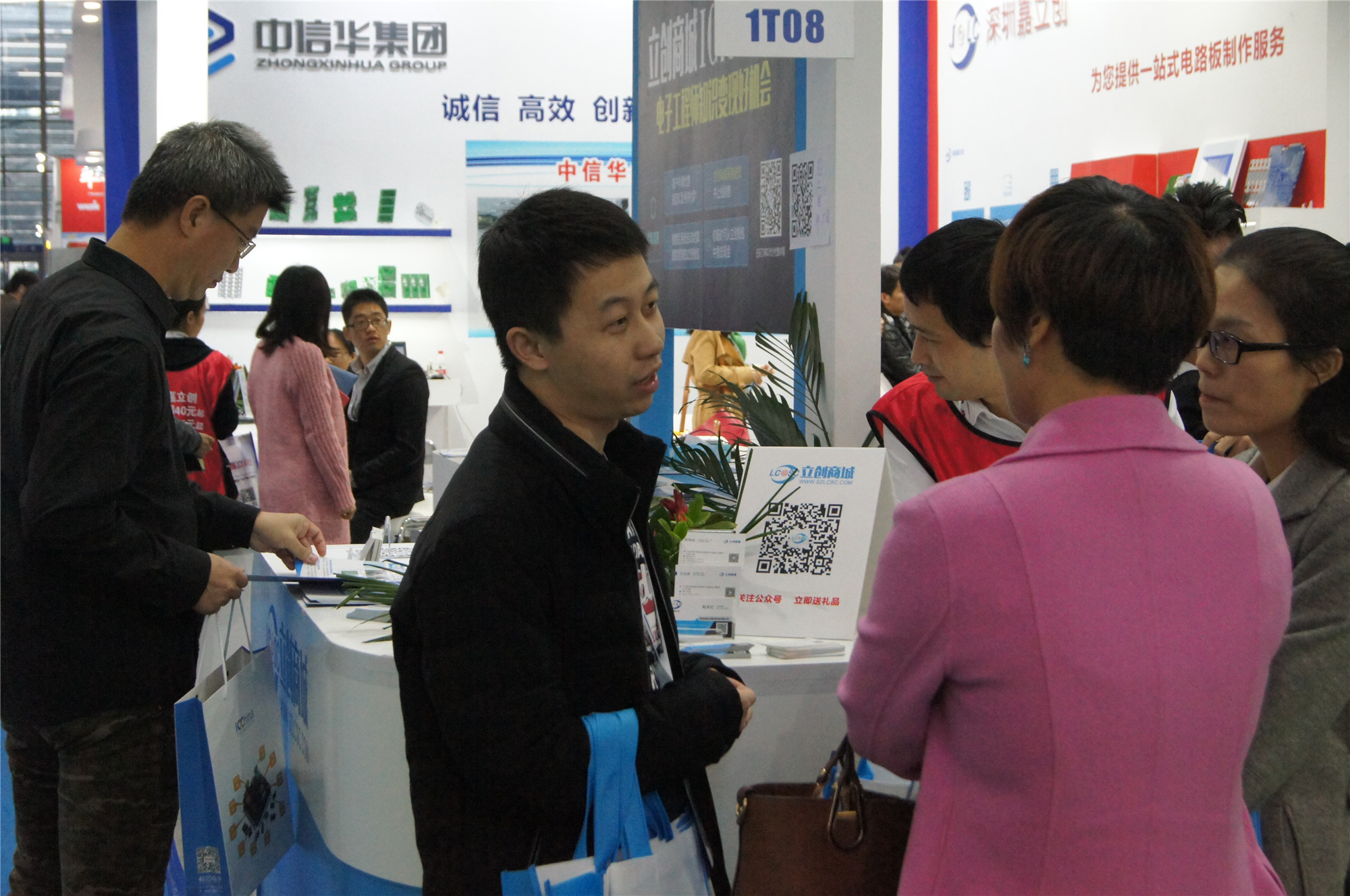 众多专业观众在展品前驻足观看,很多客户都对嘉立创和中信华的PCB样板赞不绝口。