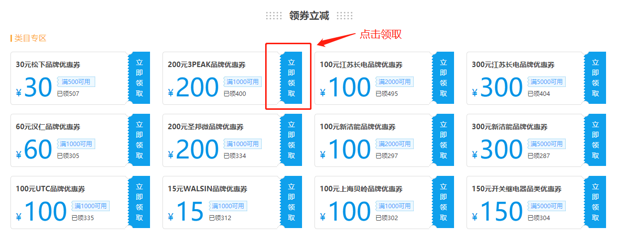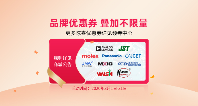 新增3PEAK、ADI、松下等大牌优惠券