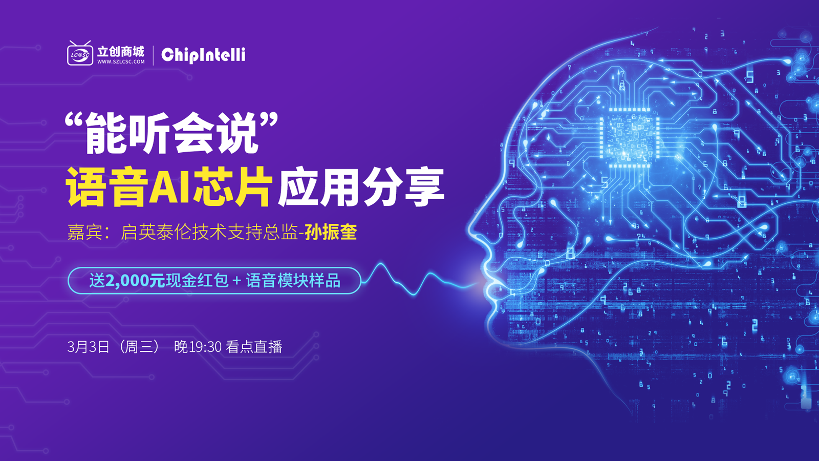 3月3日(周三)晚19:30,启英泰伦技术支持总监孙振奎做客立创直播间,观看直播抢2000元微信红包及多款智能语音模块免费样品!