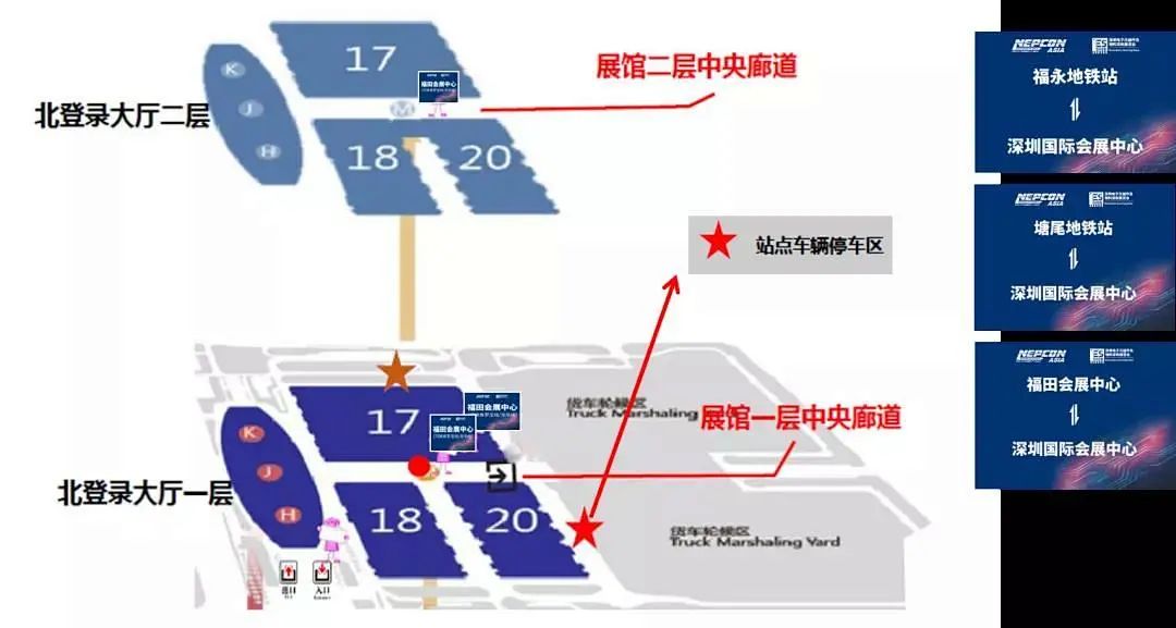 主办方在市内重要交通节点如塘尾地铁站A口、福永地铁站B口、福田地铁站D出口鼎和大厦等设置展期免费接驳班车直达展馆。