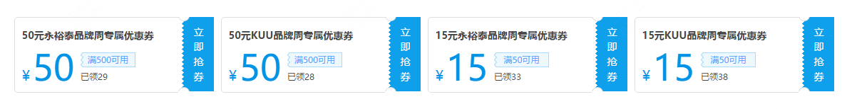 5月23日-5月29日迎来精选推荐品牌——永裕泰、KUU,商品限时9.5折,优惠券有满500元减50元、满50元减15元!超多好货福利,不容错过!