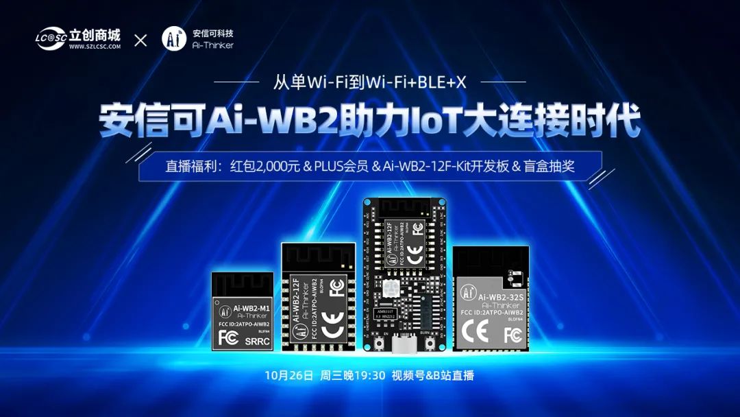 同时,为了让大家深入了解安信可Ai-WB2系列模组,以及能在线和安信可对话解疑,我们邀请了安信可硬件部经理关宁于10月26日19:30做客立创商城直播间!