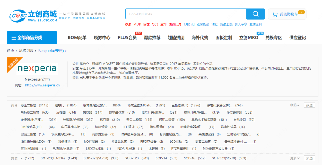 目前,安世半导体有15000+SKU、近50个产品类目在立创商城供大家选购,大家可以在立创商城便捷购买到安世半导体的热门型号和新品。