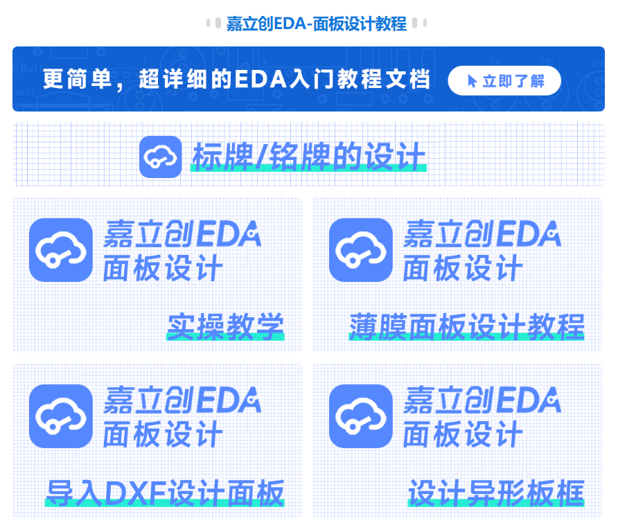 相信还有很多工程师没有涉足面板设计,没有面板设计基础能做好设计嘛?答案是:能!嘉立创EDA提供了面板设计神器,无需有面板设计基础,可直接把PCB的DXF导入到嘉立创EDA面板区,熟练后十分钟可完成面板设计,我们有面板大量的教程。
