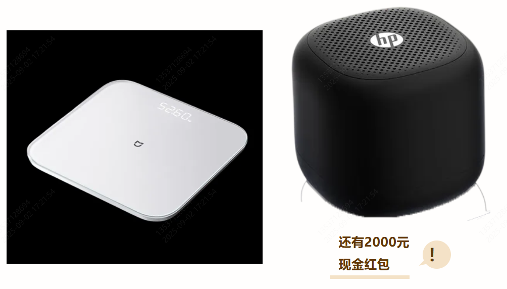 技术干货之外,本次直播还准备了超丰厚福利!不仅有惠普蓝牙音箱、小米智能体重秤等实物好礼免费送,还有2000元现金红包发放!