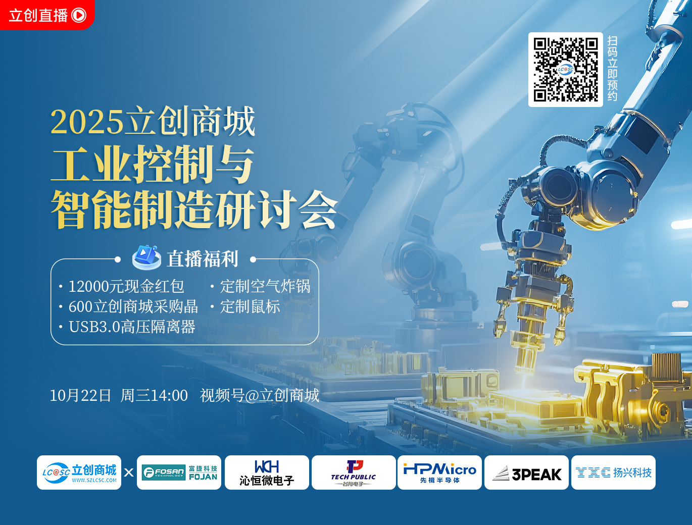 敬请锁定10月22日14:00,立创商城微信视频号准时开播,全程互动抽奖不停。赶紧预约直播,干货、福利不错过!