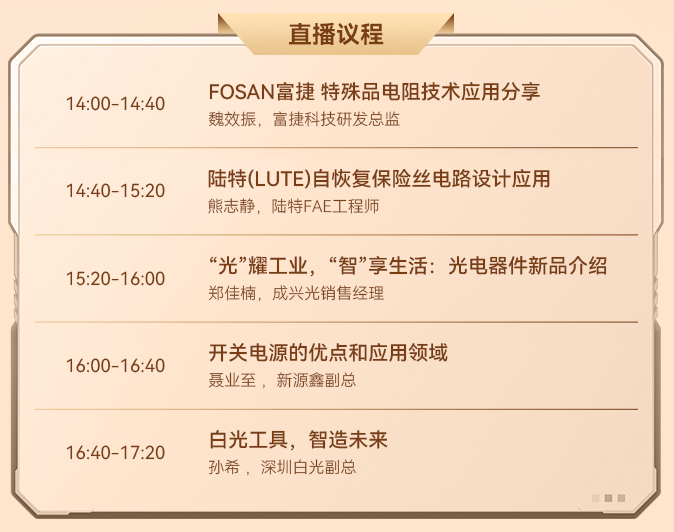 12月12日(周五)14:00,富捷、陆特、成兴光、新源鑫、深圳白光五大厂商将做客立创商城直播间,为大家带来满满的专业技术干货分享!