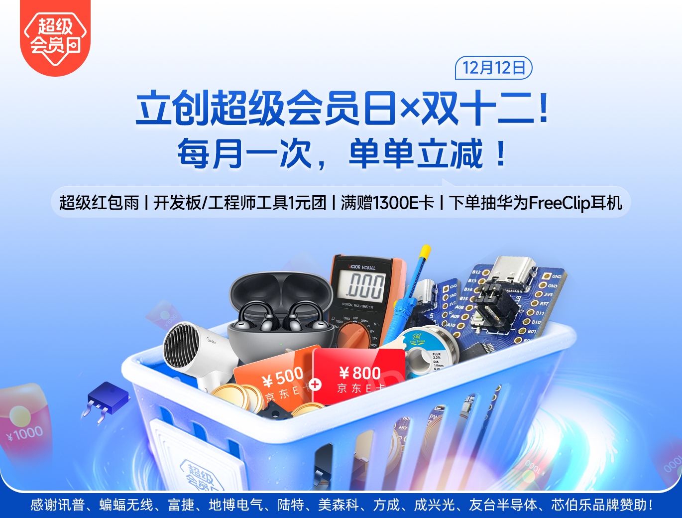 12月10日起,立创商城MRO双十二大促正式开启,超级会员日也即将在12月12日上线!各位电子人们,你们的工业品、元器件采购清单都备好没?