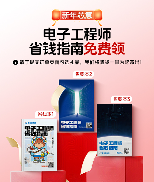12月29日即刻起,在立创商城网页端下单的用户,可在提交订单界面免费领取1本由嘉立创集团精心打造的定制版《电子工程师省钱指南》!(数量有限,送完即止)