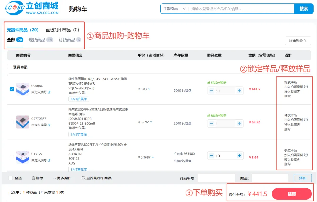 如今,我们已顺利完成了库存迁移、系统对接、人员调配等全链路整合工作。而在搬迁合仓工作完成后,样品锁定功能也已重新上线。锁定SKU上限可达40个,锁定总金额上限可达600元,注册超过60天的客户最长可以锁定样品7天。工程师们不用再担心“画好板子,货却没了”。